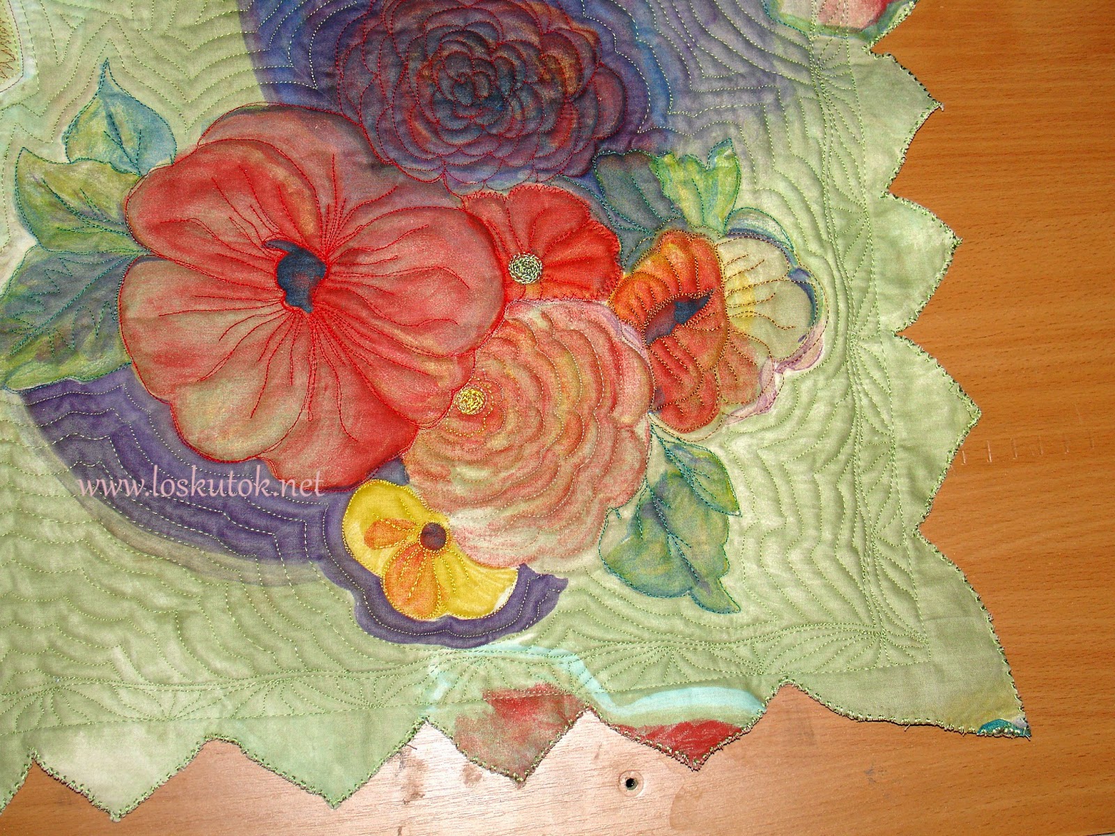 обметала зиг-загом, заранее вырезанный фигурный край.